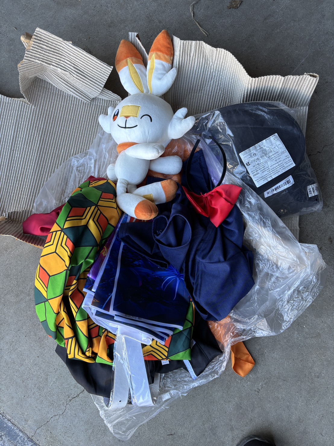千葉営業所に、ぬいぐるみとコスプレ衣装の宅配寄付が届きました。 ポケモンのぬいぐるみ、鬼滅の刃の仮装