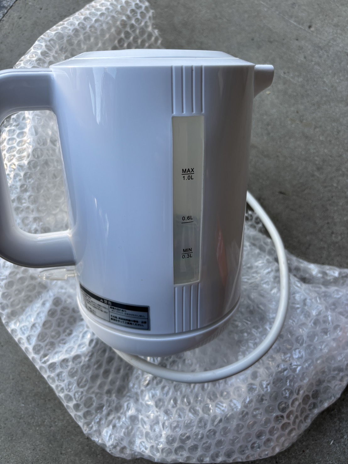 千葉営業所に、電気ケトルの宅配寄付が届きました。 プチプチで丁寧に梱包された白い電気ケトル。 日常生