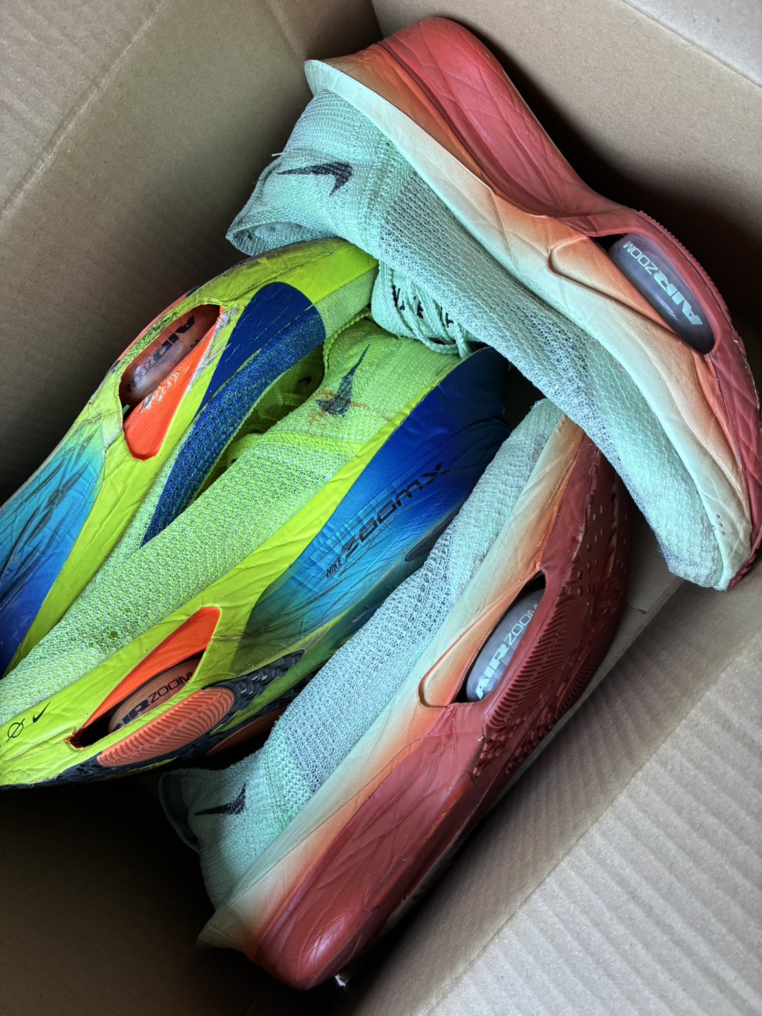 大阪営業所に、ランニングシューズの宅配寄付が届きました。 カラフルなNikeのランニングシューズ2足