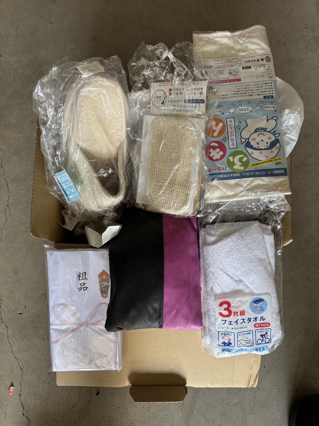 千葉営業所に届いた宅配寄付|景品・粗品のタオル・日用品の寄付