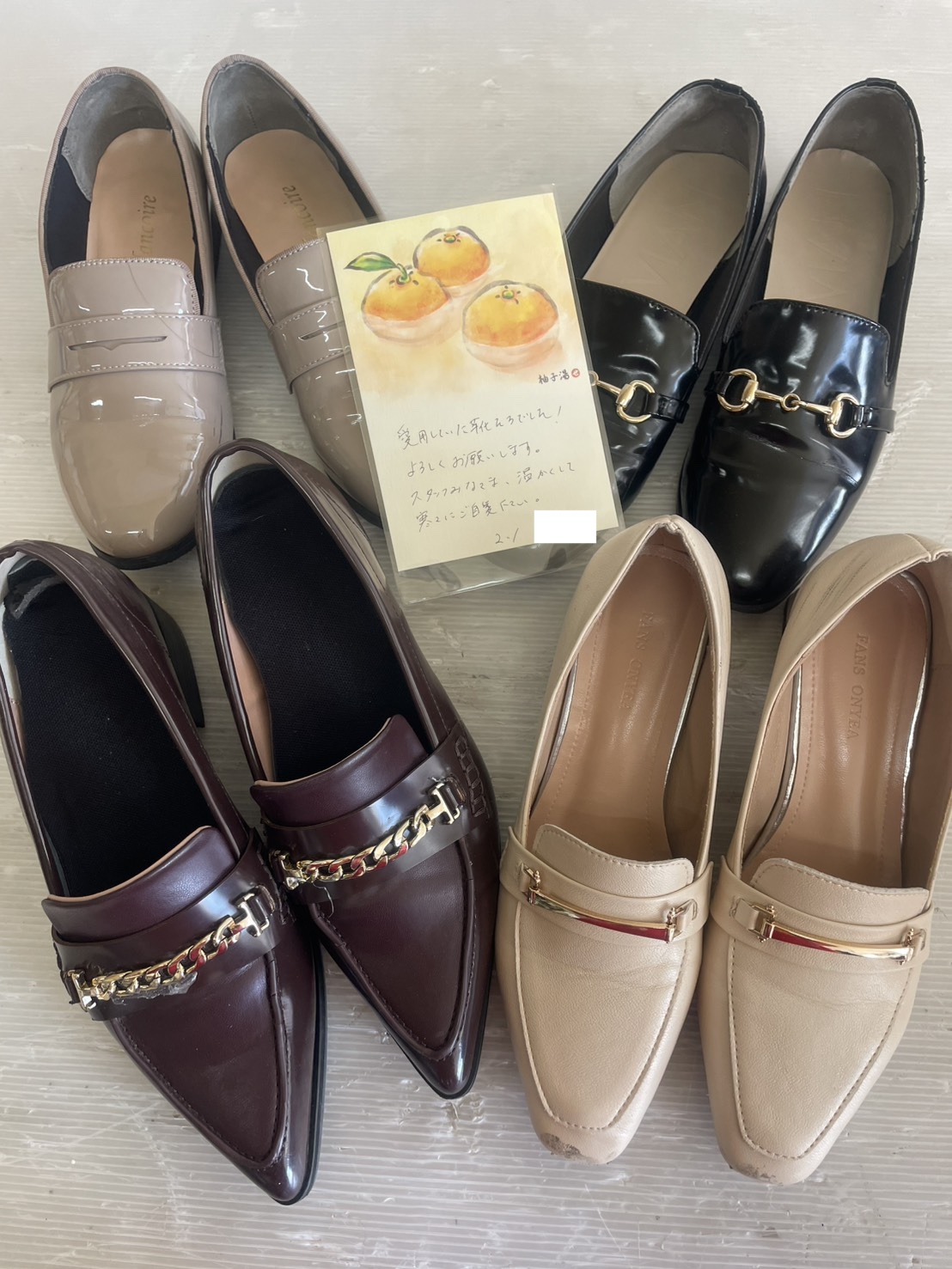 大阪でレディースシューズの宅配寄付をいただきました|ローファー4足