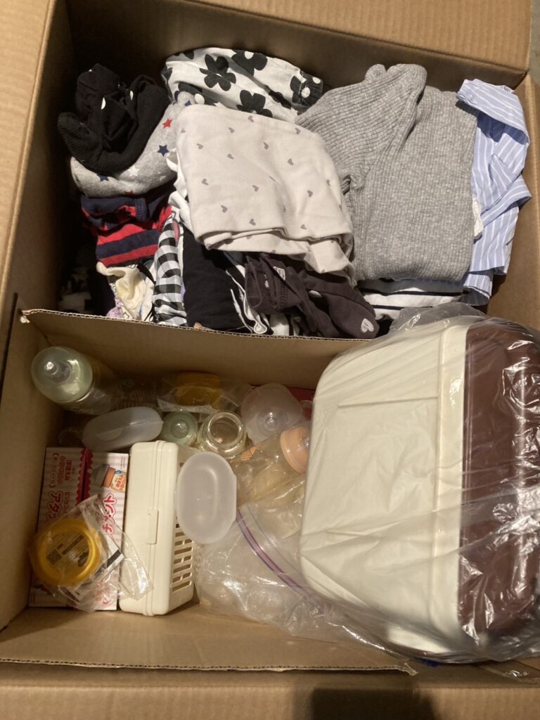 この度、複数のお客様から宅配便で寄付品をお送りいただきました。レジ袋や段ボール箱に丁寧に梱包された寄付品には、様々なアイテムが含まれていました。