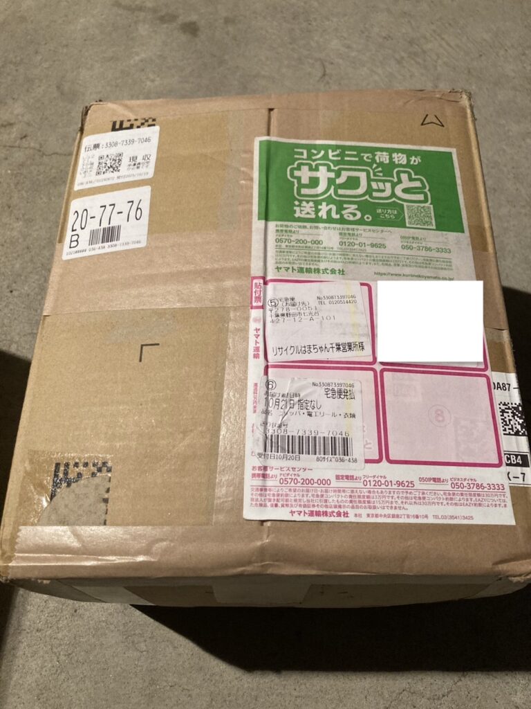 リサイクルはまちゃん千葉営業所に、東京都のお客様から宅配便で寄付品が届きました。