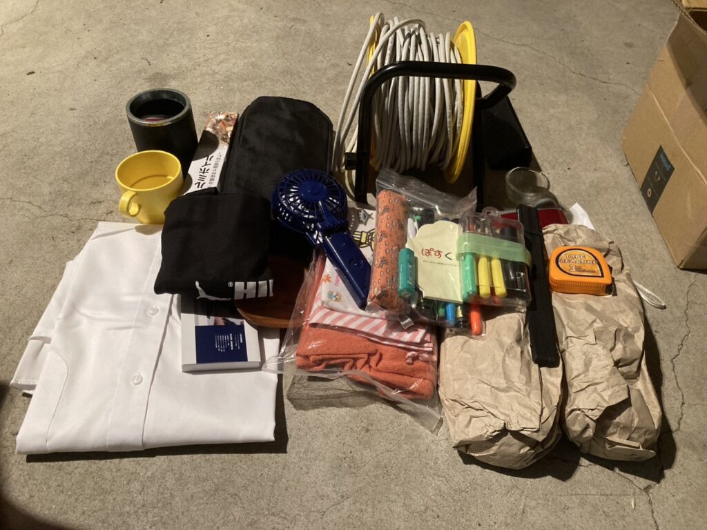 今回は、スリッパ、電工リール、衣類といった多様なアイテムをお送りいただきました。