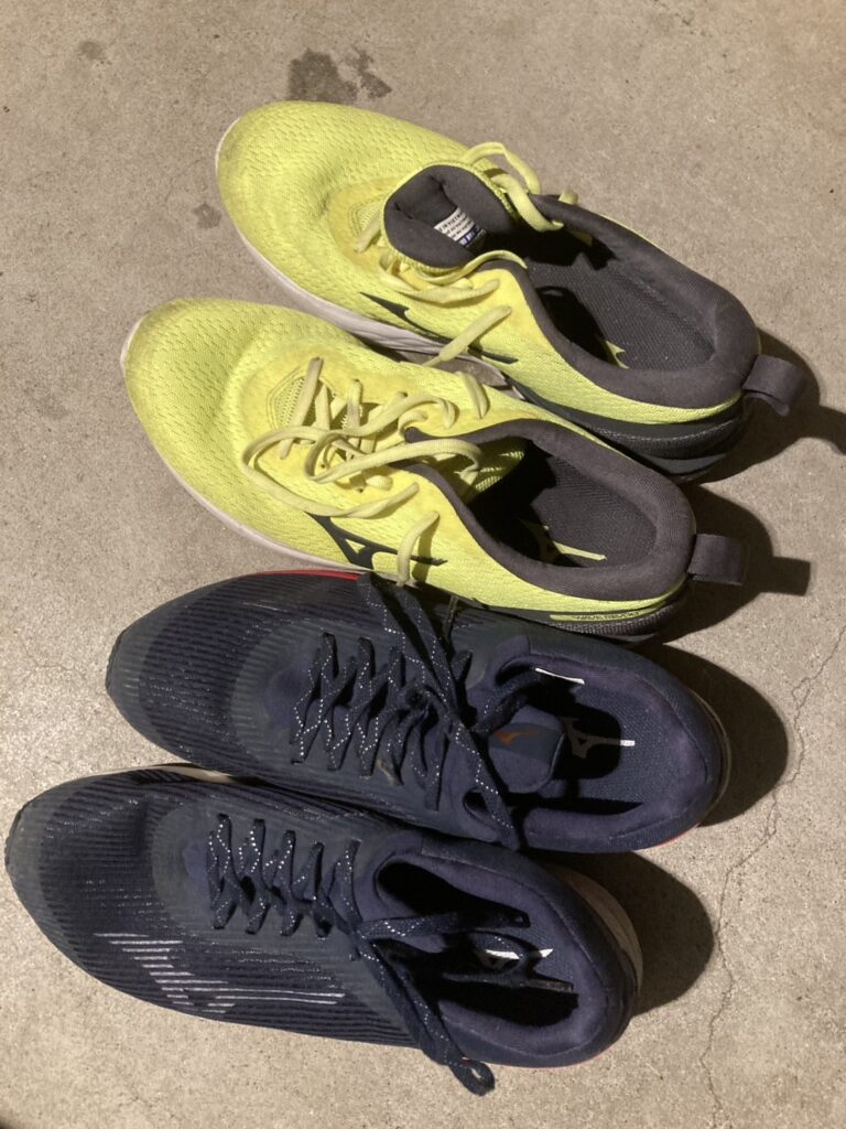 ミズノのランニングシューズ(黄色と紺色)など、スポーツブランドのシューズも届きました。