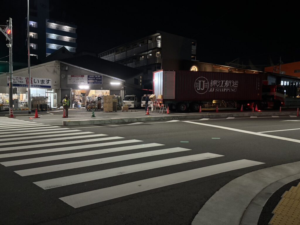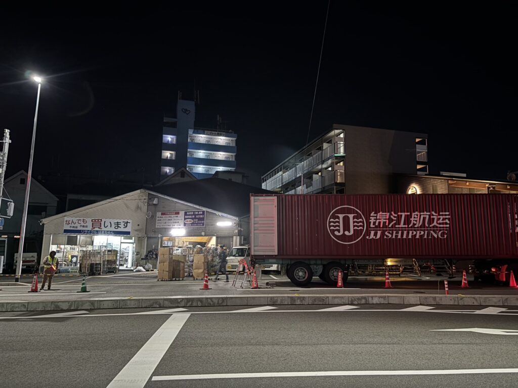 深夜、大阪本社の倉庫前に大型トラックが到着しました。