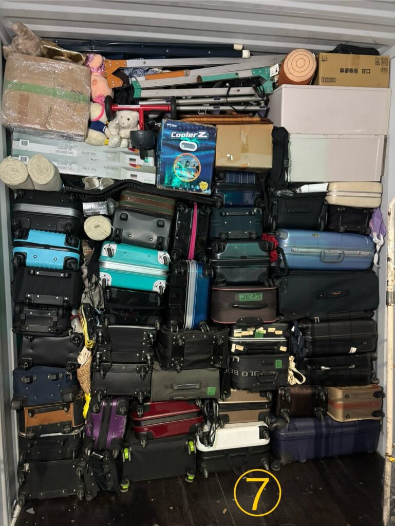 コンテナ内部の写真を見ると、実に多くのスーツケースが積み込まれています。