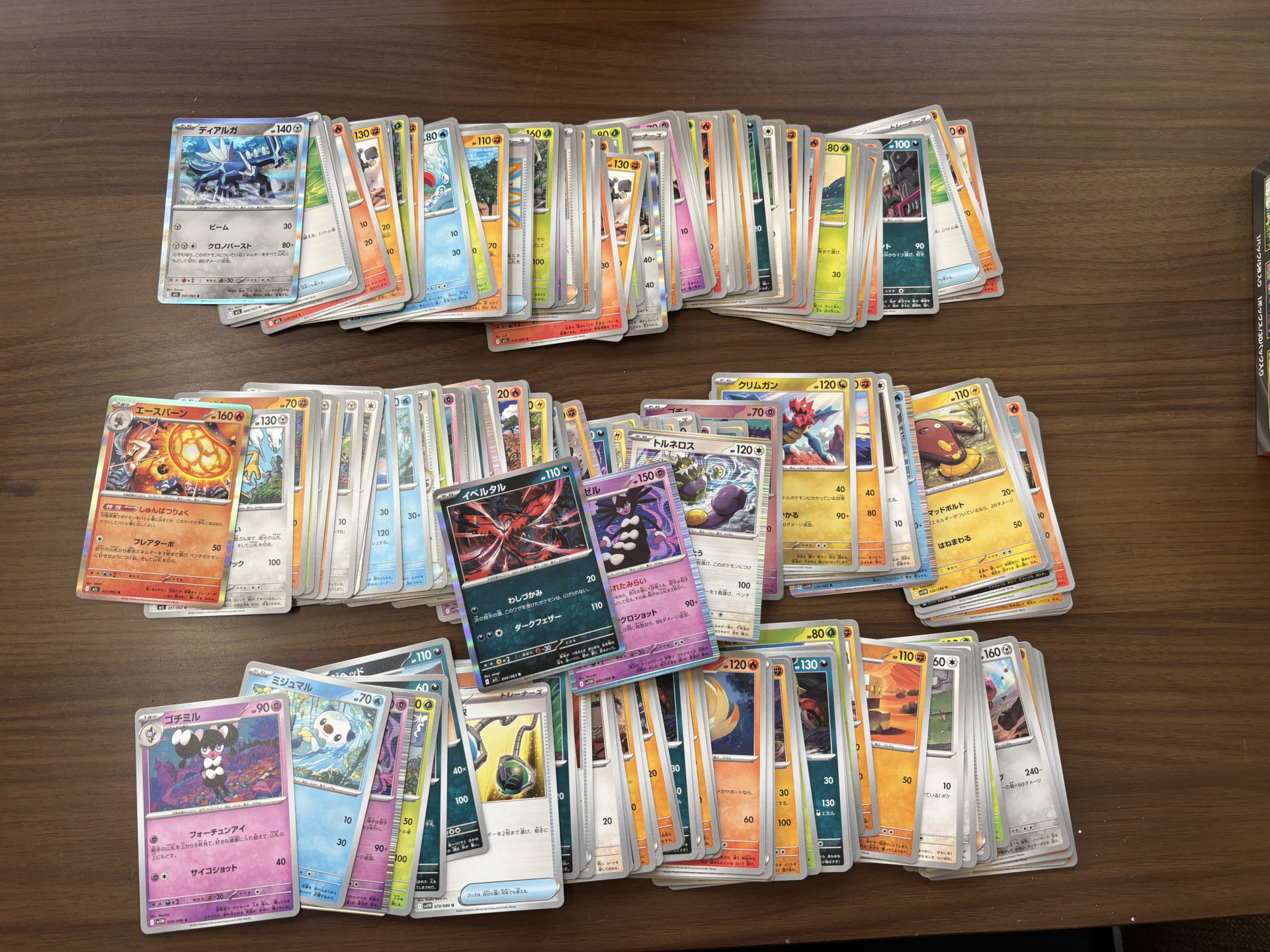 テーブルに並べられたポケモンカードは、推定で500枚以上。