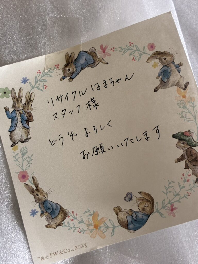 「リサイクルはまちゃん スタッフ様 どうぞよろしく お願いいたします」