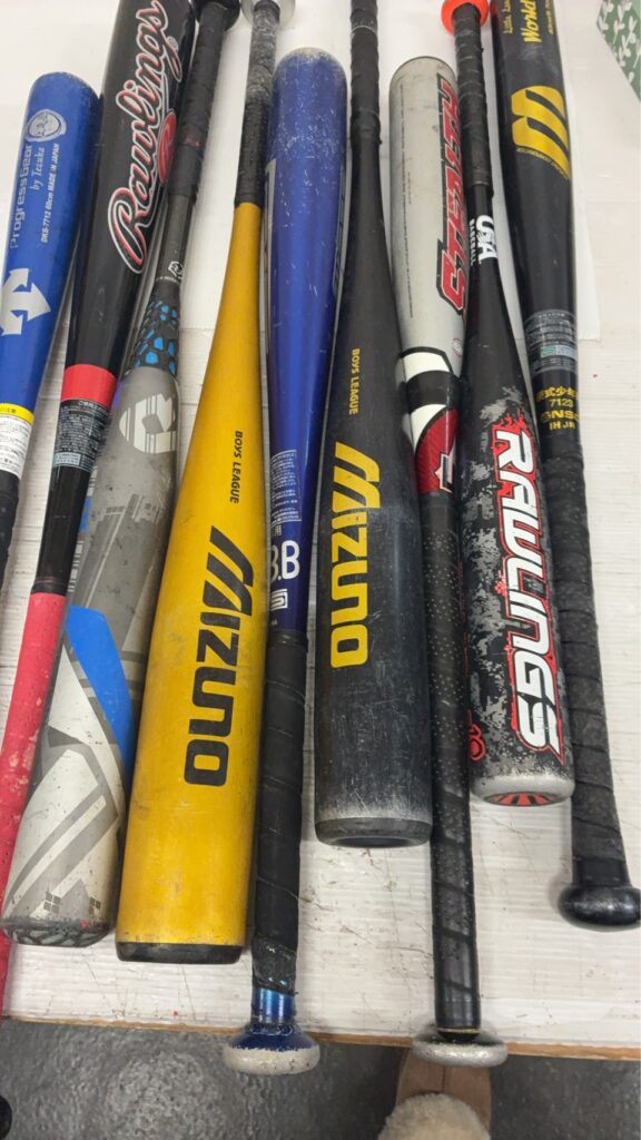 MIZUNO、Rawlingsなど、様々なメーカーのバット。使用感はありますが、まだまだ使える状態です。
