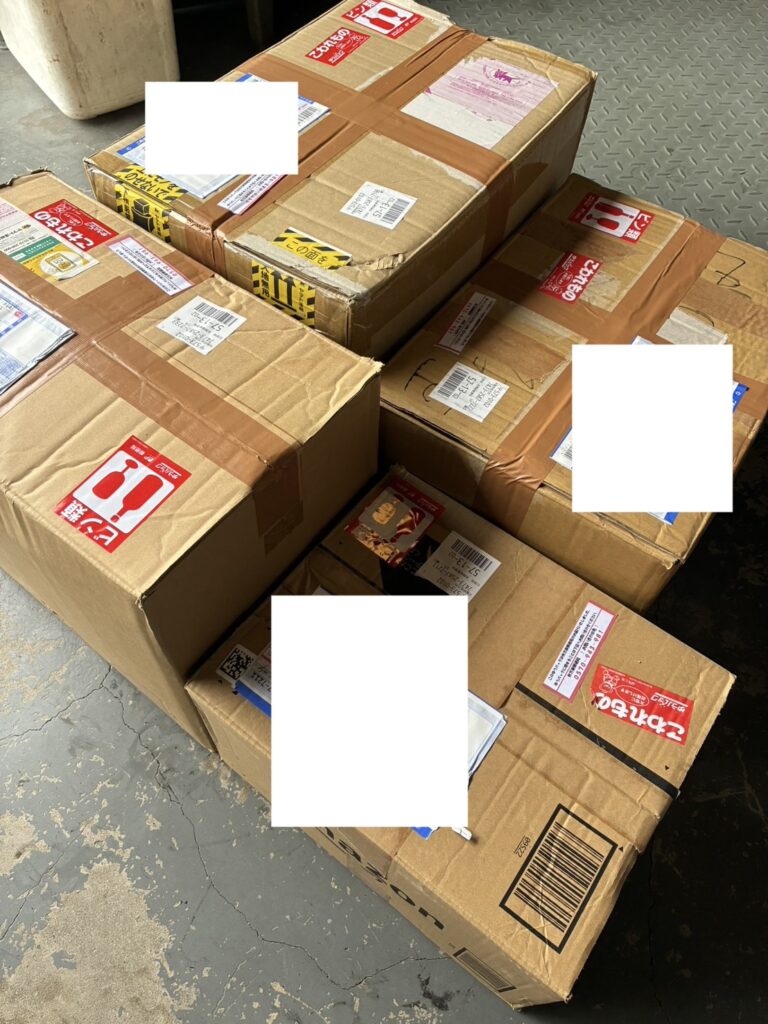 複数のダンボール箱に、丁寧に梱包された品物たち。