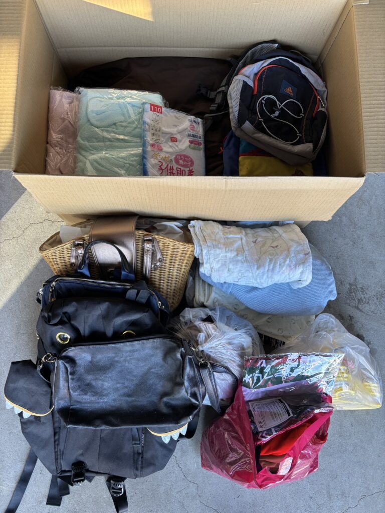 千葉営業所に、ベビー用品、バッグ、衣類などの宅配寄付が届きました。