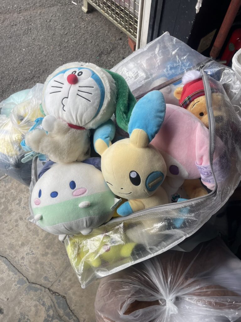 これらのぬいぐるみは、東南アジアのリサイクルショップで販売されます。キャラクターぬいぐるみは特に人気があり、多くの子どもたちに喜ばれます。