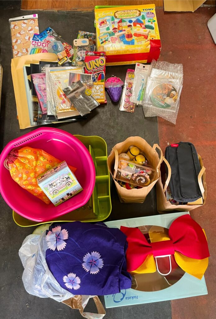 子どもたちが楽しめるおもちゃから、日本の伝統的な浴衣まで、幅広い品物が揃っています。