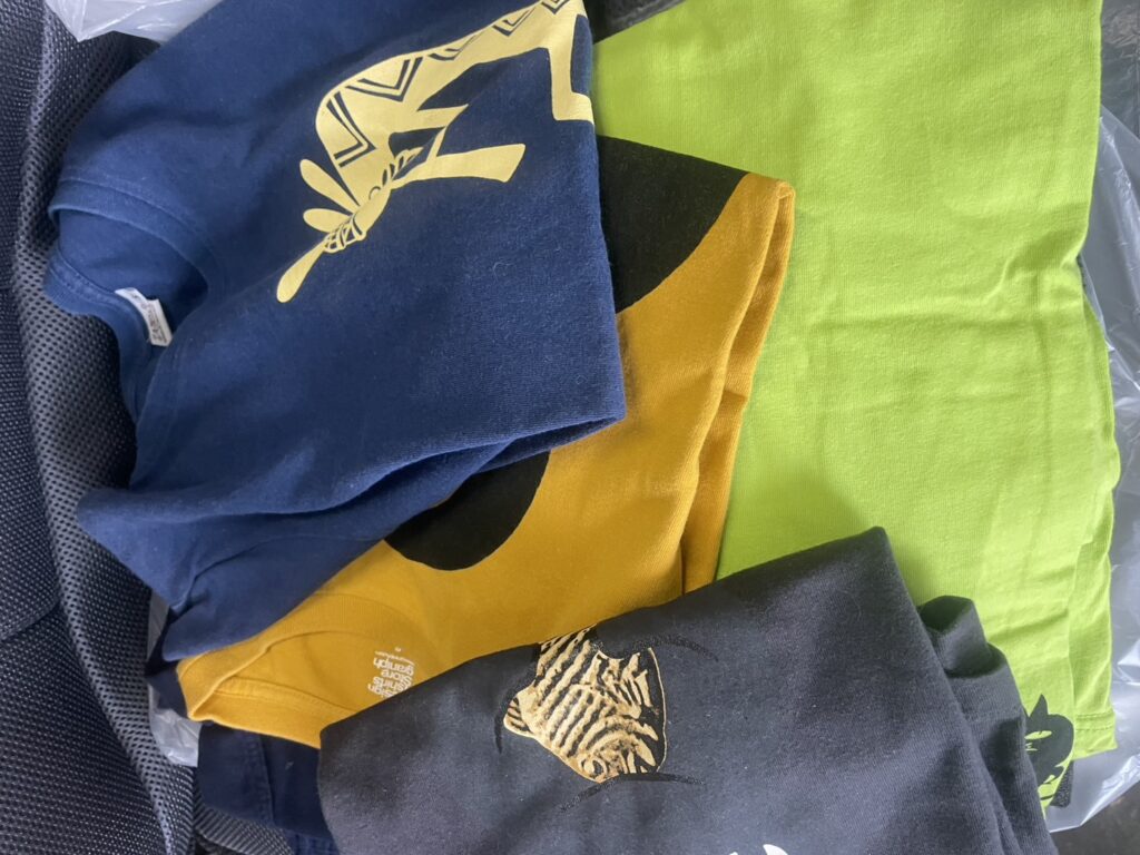 ネイビー・マスタードイエロー・ライムグリーン・ダークグレーのTシャツが届きました。