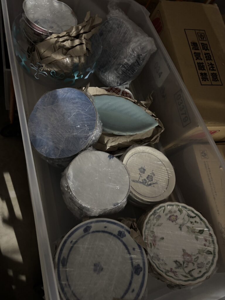 大きな収納ケース数箱分にわたって、多種多様な食器が届きました。