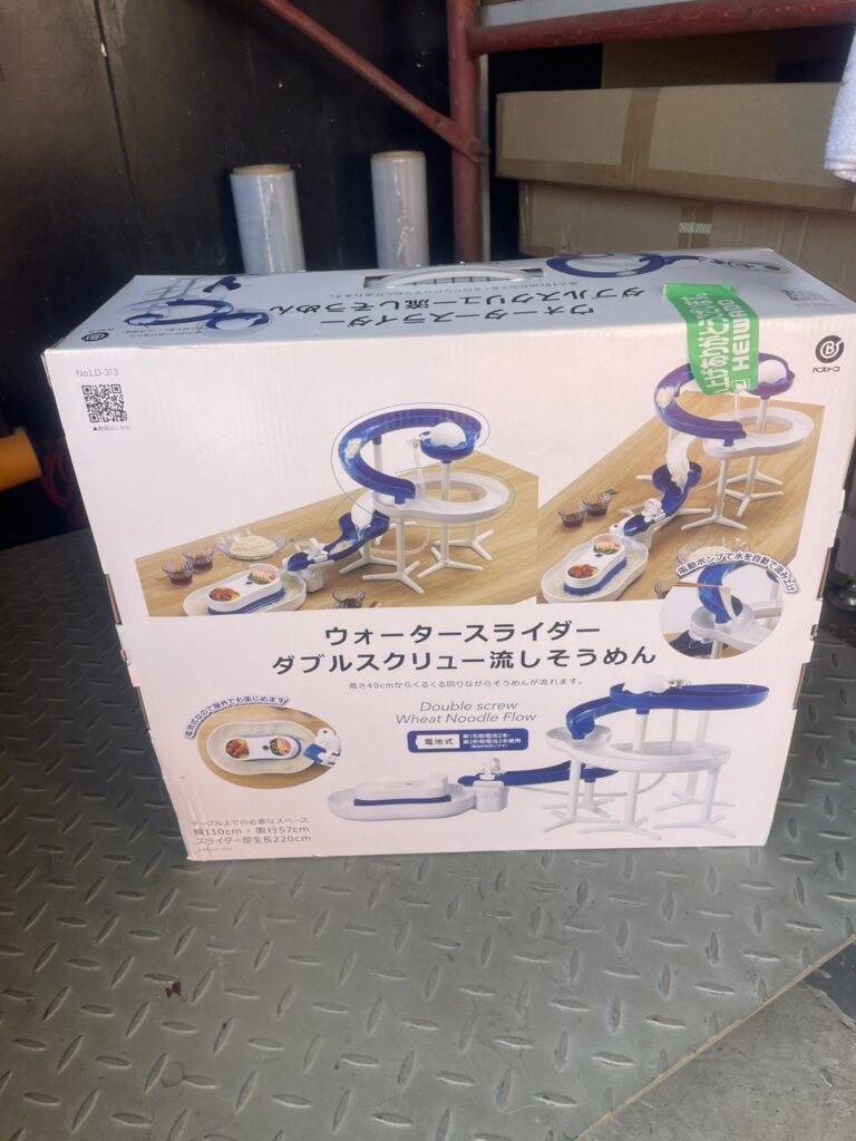 千葉拠点には、「ウォータースライダー ダブルスクリュー流しそうめん機」が化粧箱入りで持ち込まれました。