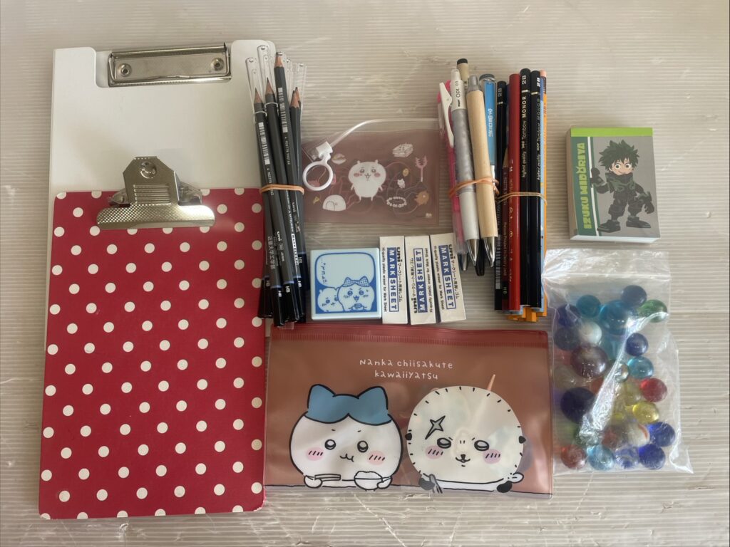 消しゴム(MONO・マークシート用など)、定規、コンパス、ステープラー、ハサミ、セロハンテープといった学習に使う道具もまとめて届きました。