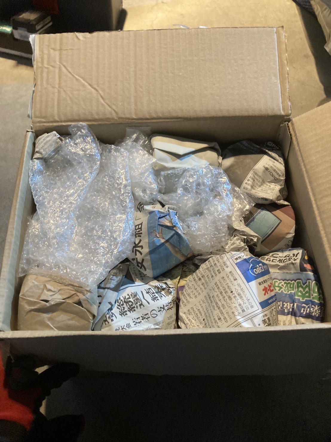 千葉営業所に、食器の宅配寄付が届きました。 ダンボール箱を開けると、エアキャップ(プチプチ)で丁寧に