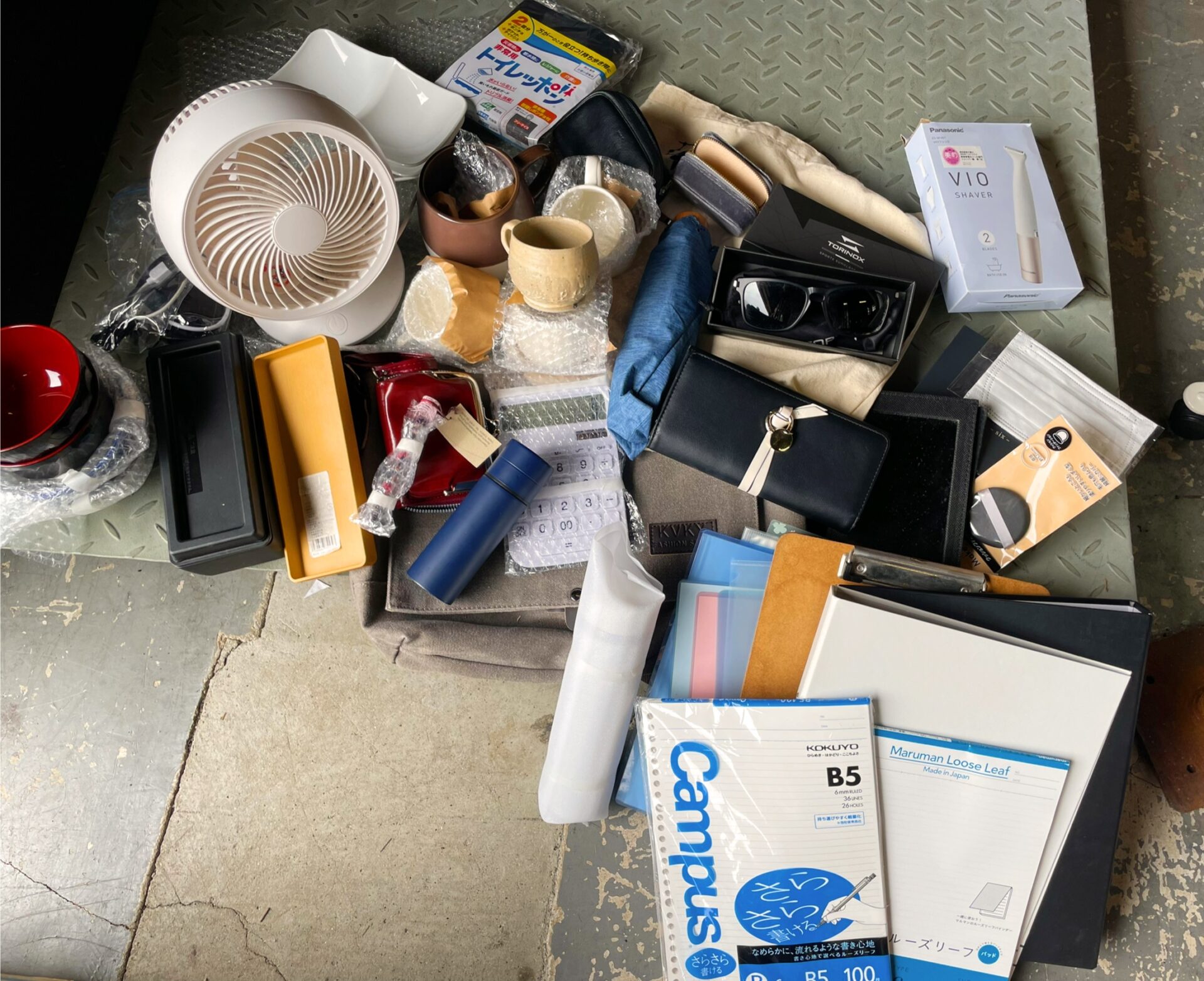 大阪営業所に、様々なカテゴリーの生活用品の宅配寄付が届きました。 バッグ、文房具、食器、小型扇風機、