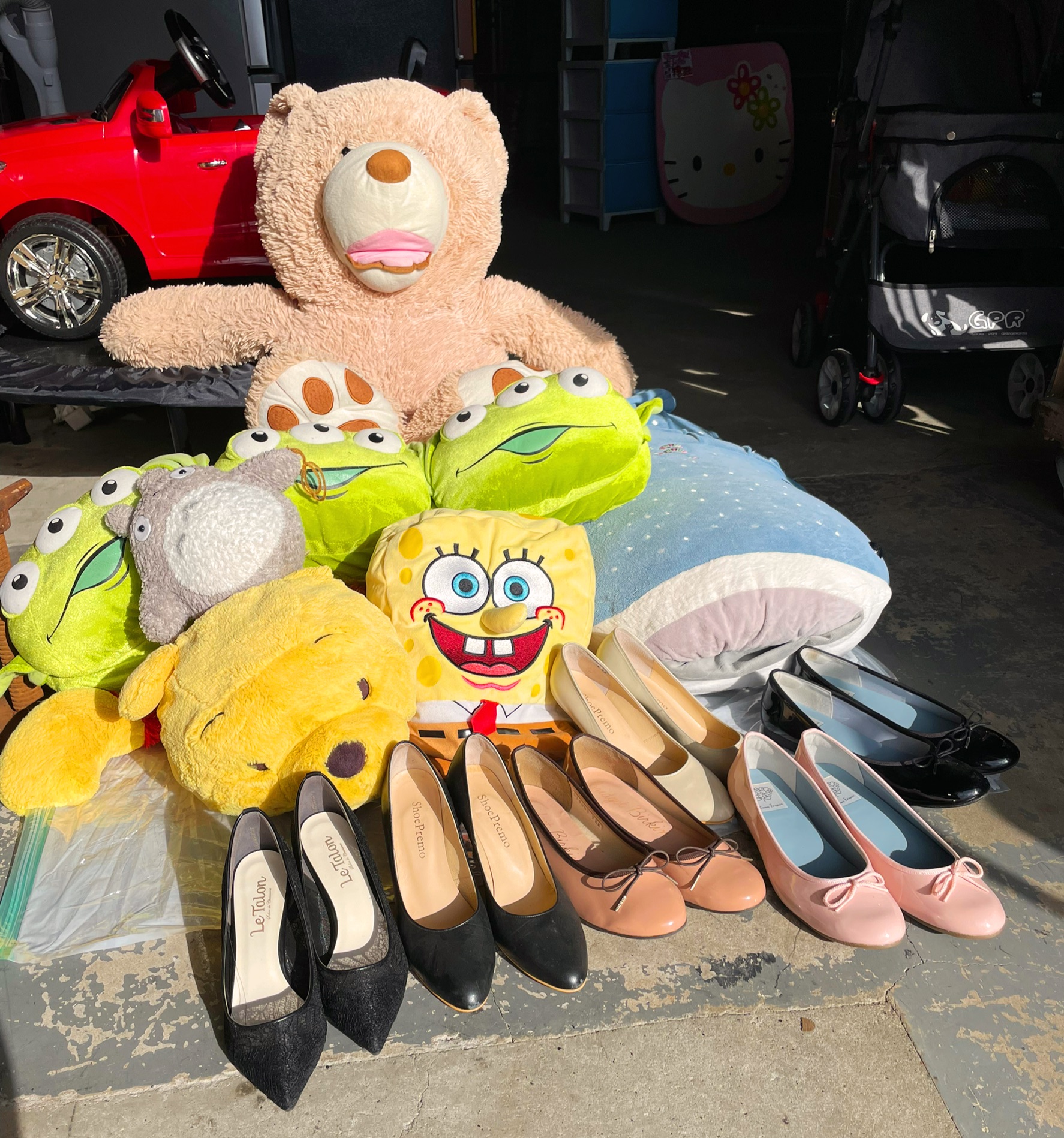 大阪営業所に、キャラクターぬいぐるみとレディースシューズの宅配寄付が届きました。 大きなクマのぬいぐ