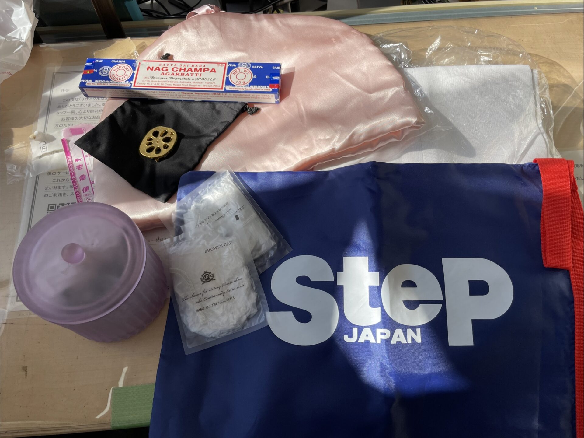 大阪営業所に、雑貨・生活用品の宅配寄付が届きました。 バッグ、お香、巾着袋、シャワーキャップ、保存容