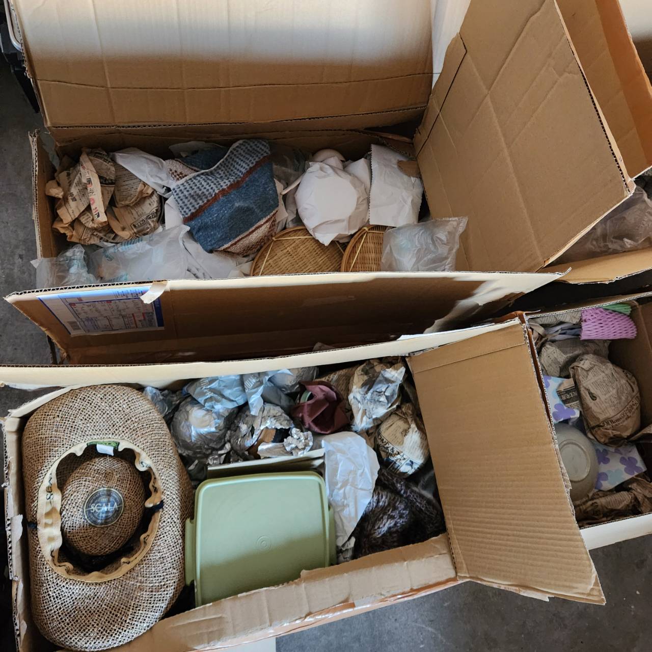 カゴの入れ物・食器・雑貨の宅配寄付|岡山営業所に届いた生活用品