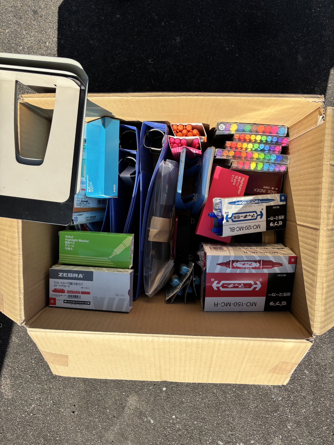 千葉営業所に、事務用品と画材の大量宅配寄付が届きました。 ダンボール箱いっぱいに詰められた、様々な文