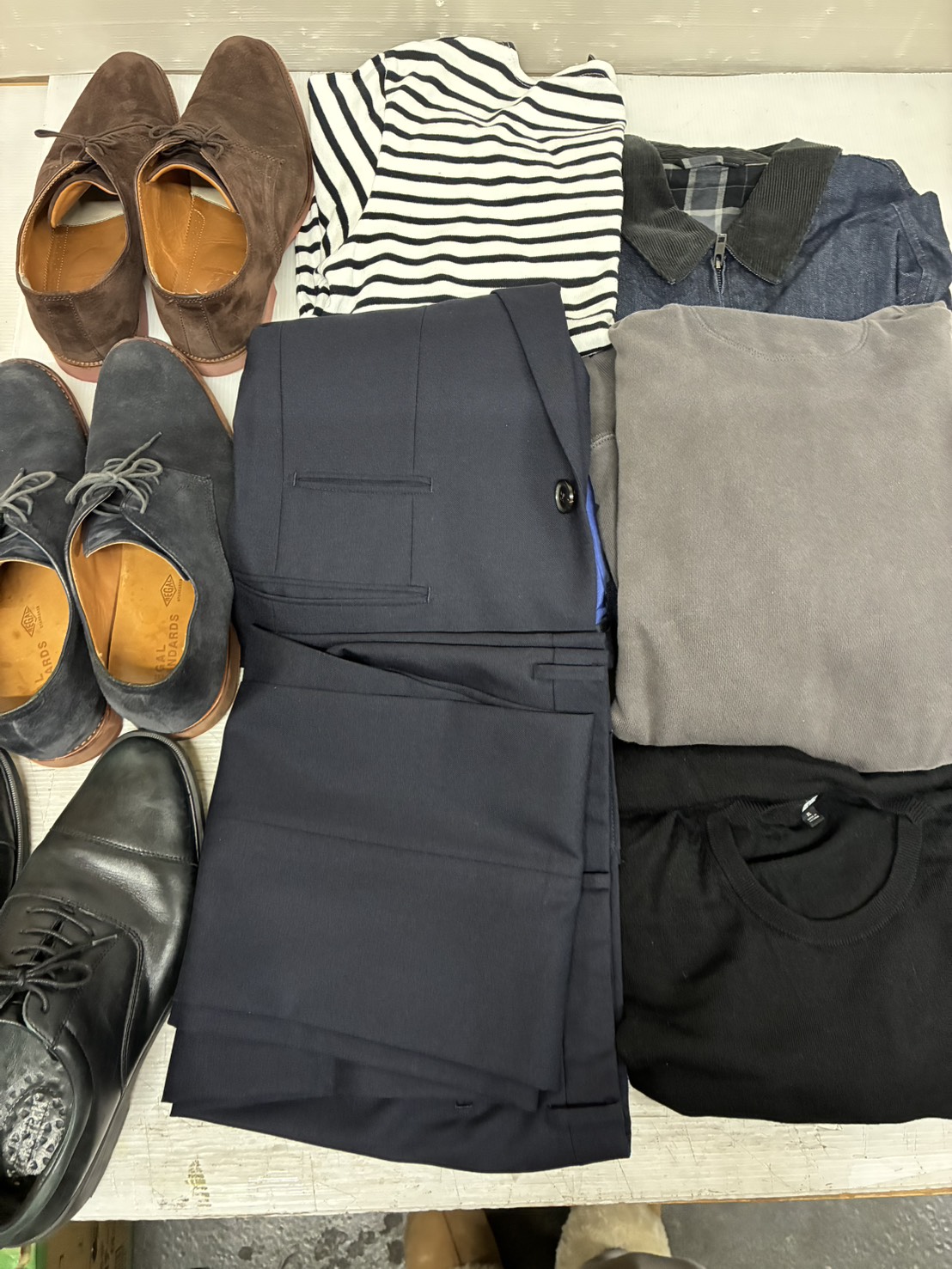 大阪営業所に、REGAL(リーガル)の紳士靴と紳士衣料の宅配寄付が届きました。 きれいに並べられた、